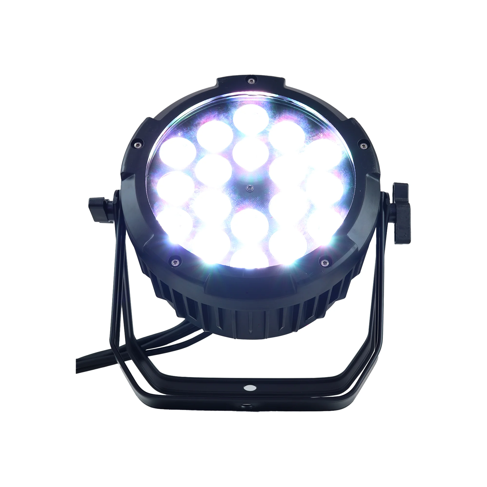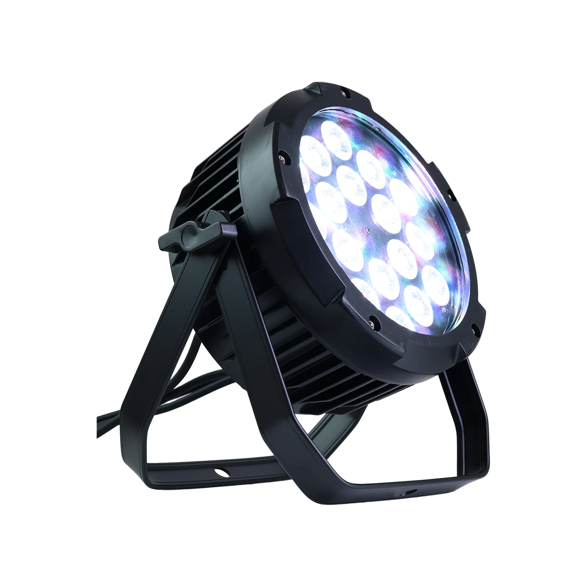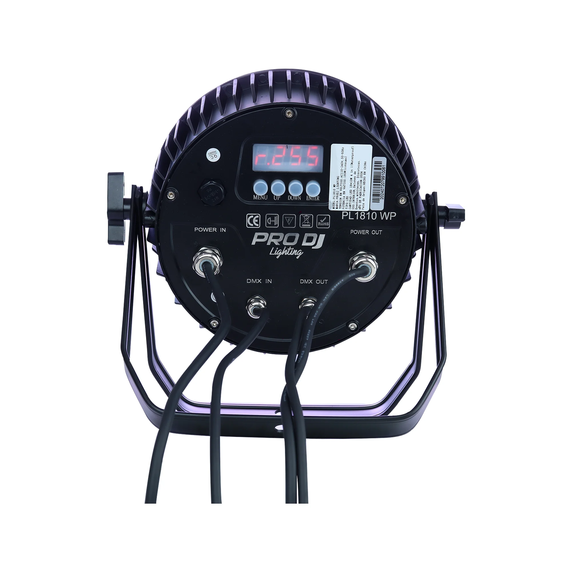 El PRO DJ LIGHTING PL1810 WP es un PAR LED profesional impermeable diseñado para aplicaciones en exteriores y entornos exigentes. Incorpora 18 LEDs de 10W RGBW 4 en 1 que ofrecen lavado de color potente y uniforme, con modos Automatico, Audioritmico y DMX. Su certificacion IP65 lo hace ideal para escenarios, eventos al aire libre y aplicaciones arquitectonicas.
